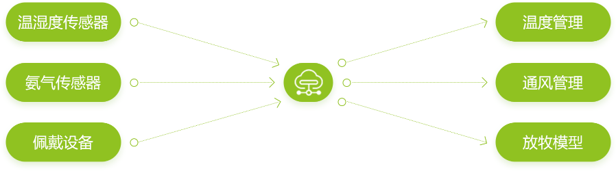 使用AIOT智能耳标采集温度、步数、生理阶段等数据,自动匹配数据库中同类猪的养殖模型,科学养殖。智能饲喂,杜绝变质、浪费,减少人工对生猪产生的应激反应刺激。