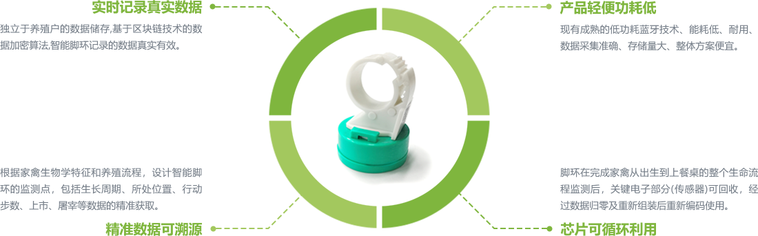 独立于养殖户的数据储存,基于区块链技术的数据加密算法,智能脚环记录的数据真实有效。